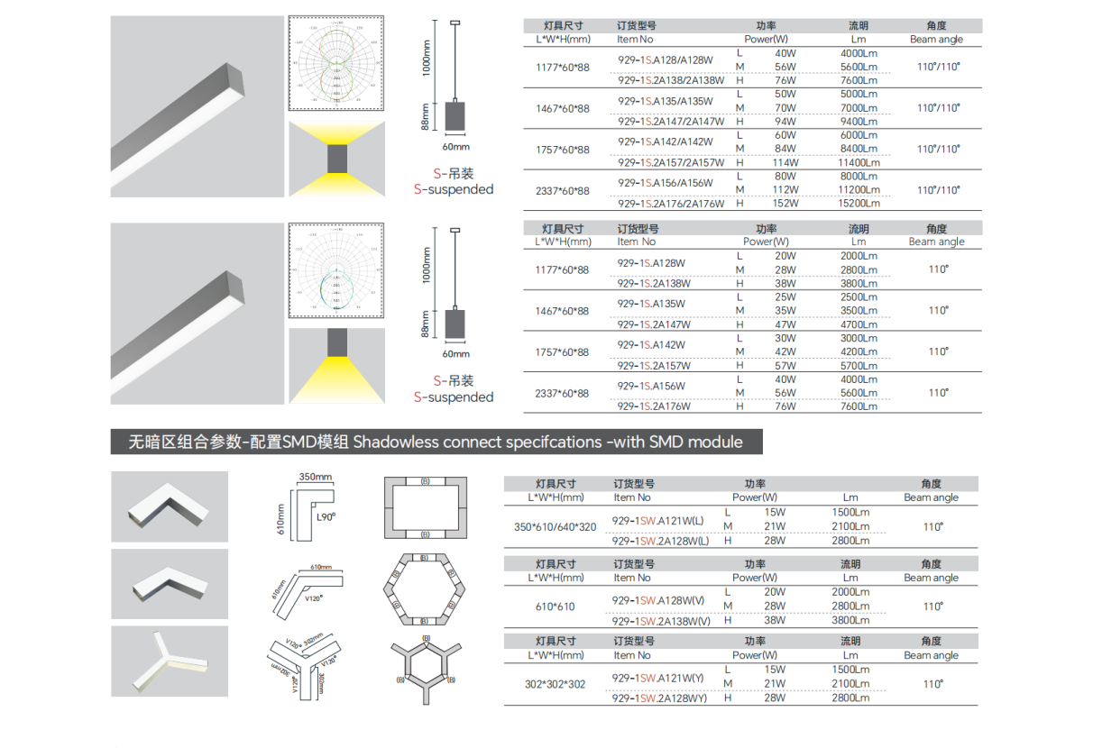 W60*H88,下射光或上下射光 可無暗區(qū)連接